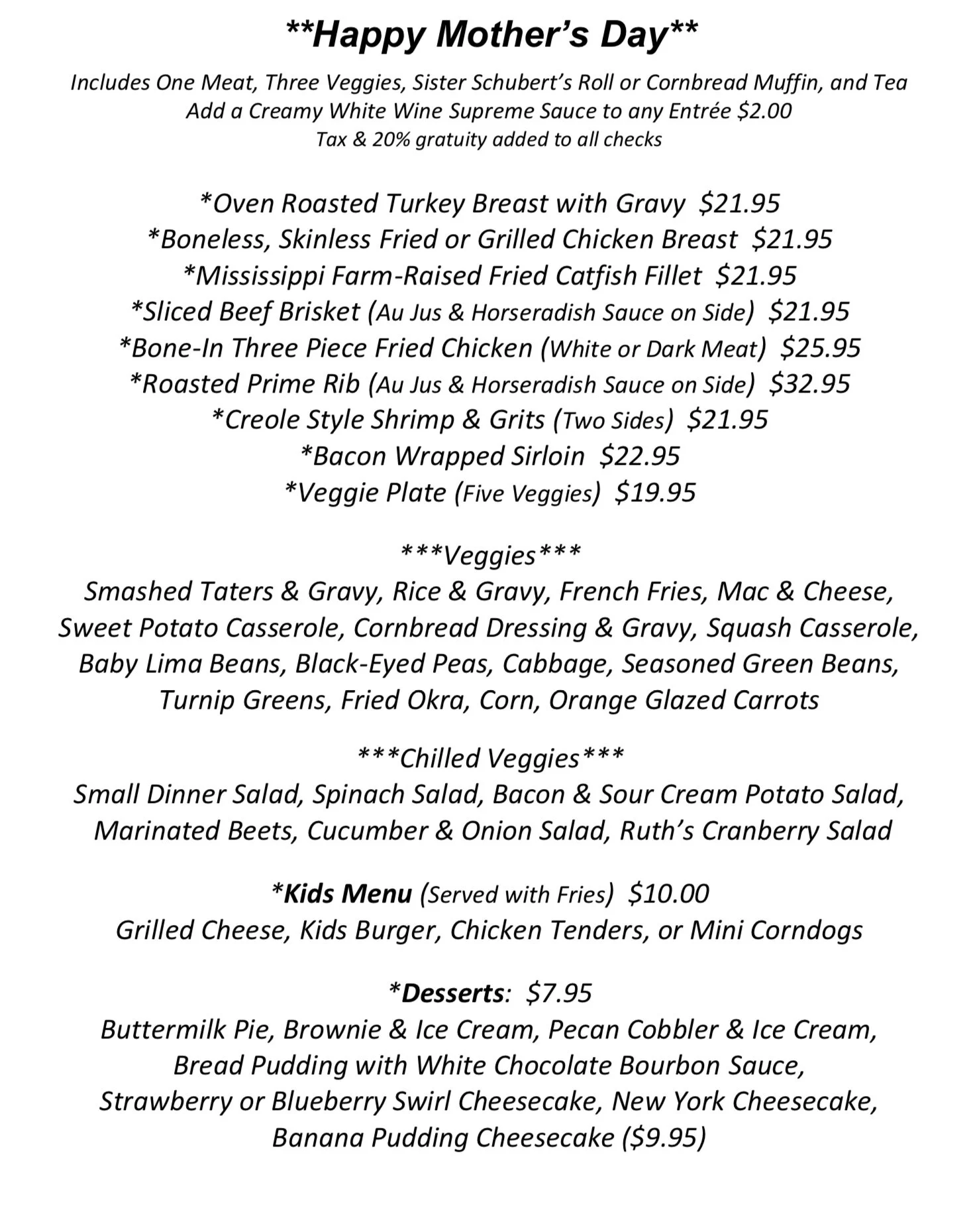 Dinner Menu